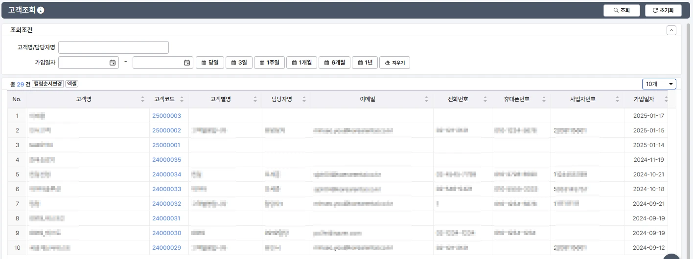 고객 리스트 및 조직도 관리 기능- 거래 중인 고객 리스트를 엑셀로 일괄 등록하여 체계적으로 관리 가능