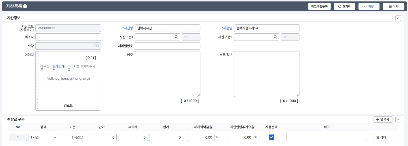 자산관리/입출고관리- 견적복사 및 등록한 견적으로 계약전환 가능- 자산명과 제품명 단 2가지 항목만 입력하여 자산관리 가능 - 필요한 경우 렌탈 장비 별 고유번호를 부여하여 체계적인 관리 가능- 입출고 관리를 통해 재고관리 가능